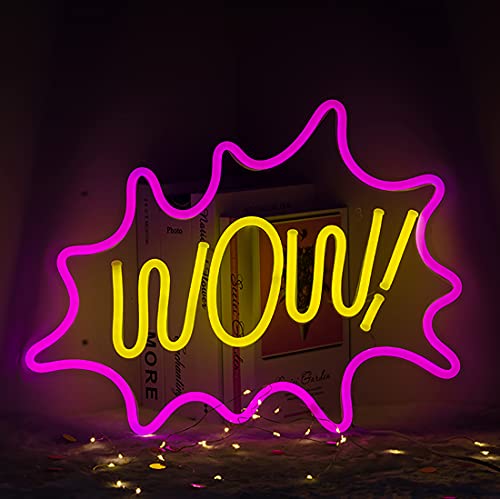 Pink Wow LED Neon Light Sign, 17”x13” Wall Art Neon Wall Sign