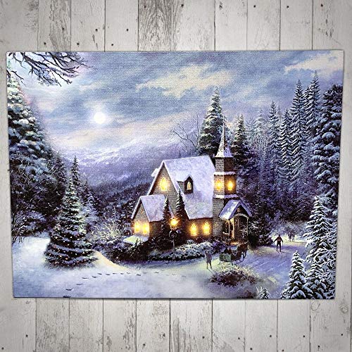 LED Holiday Christmas Canvas Church Print - Light Up Winter Scene - Forest Set