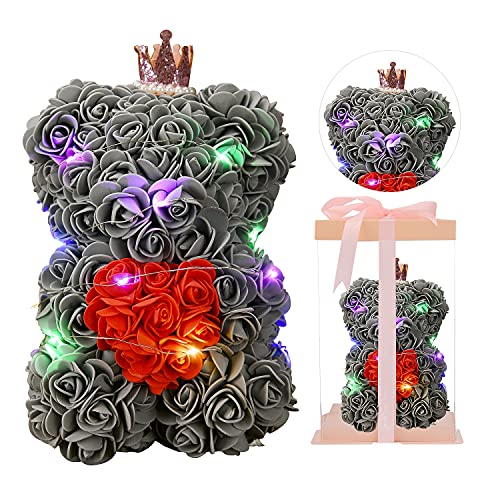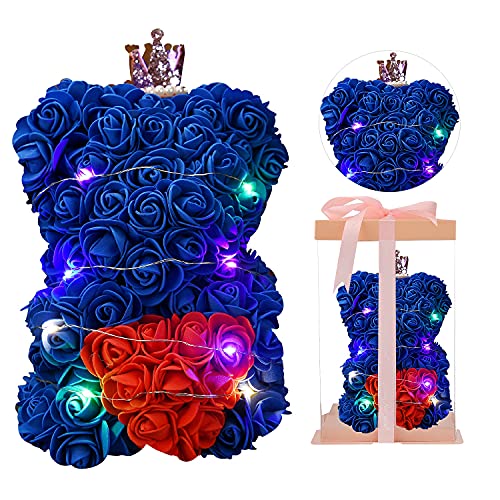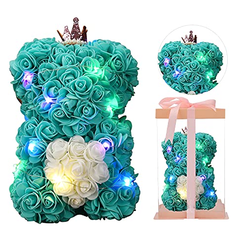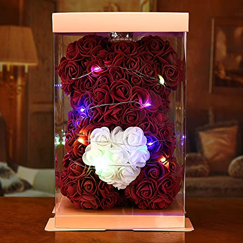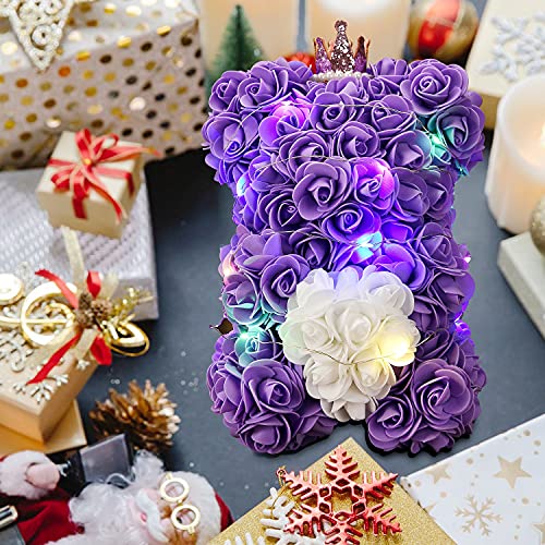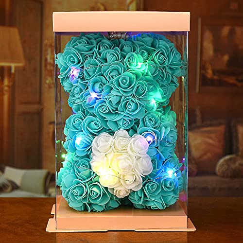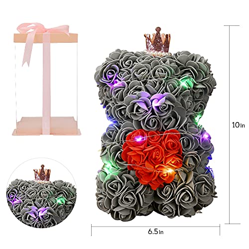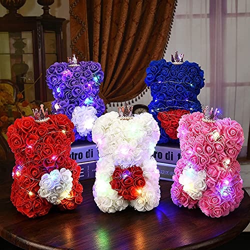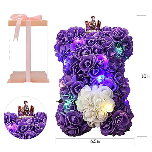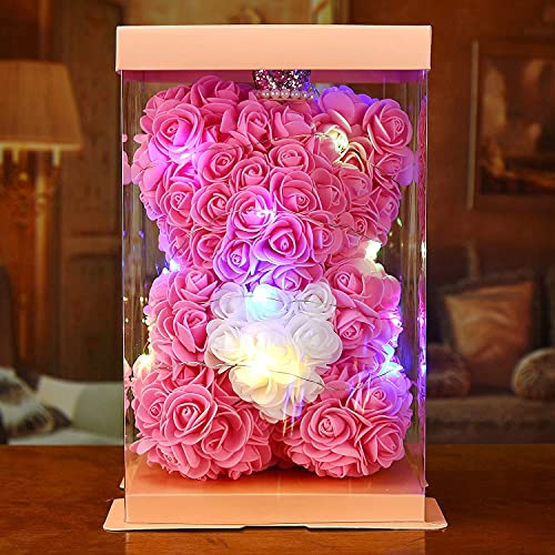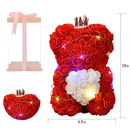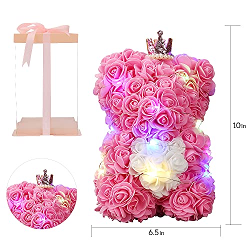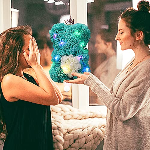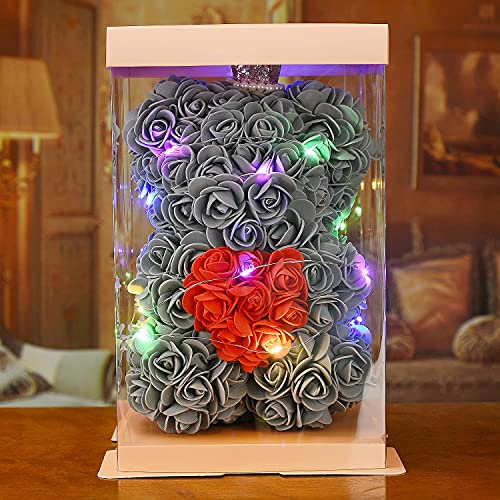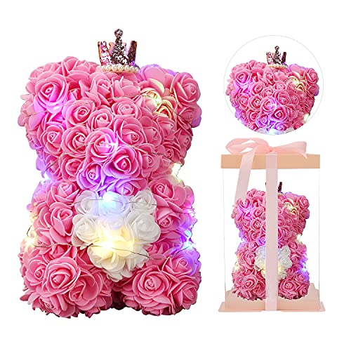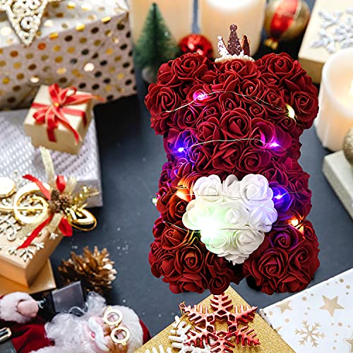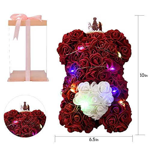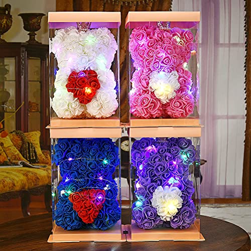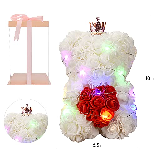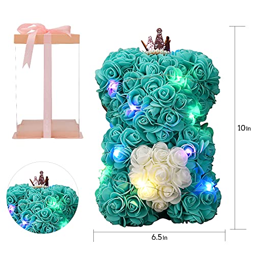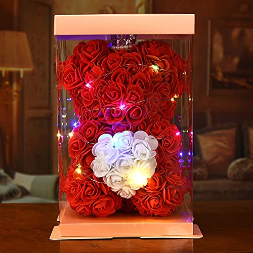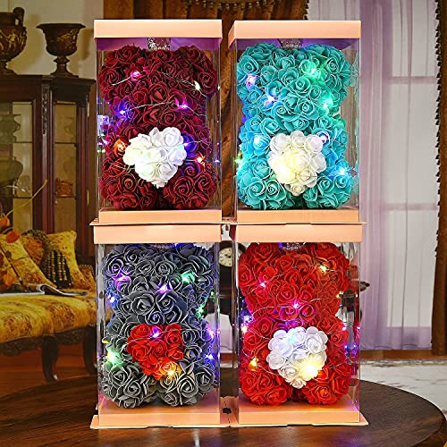 - Rose Teddy Bear-Lightweight and long-lasting perfect charm, suitable for any family and holiday gifts. Over 250+ Flowers on Every Rose Bear, About 25.4 cm (10 inch)Tall. Including a transparent gift box (the thin protective film on the surface can be torn off)-Give away LED light