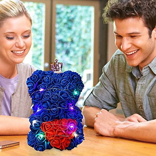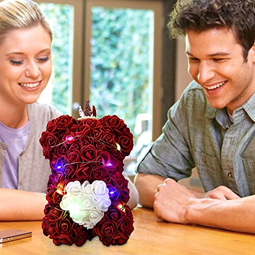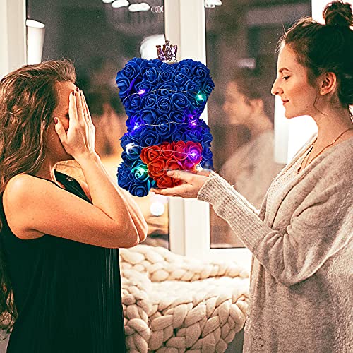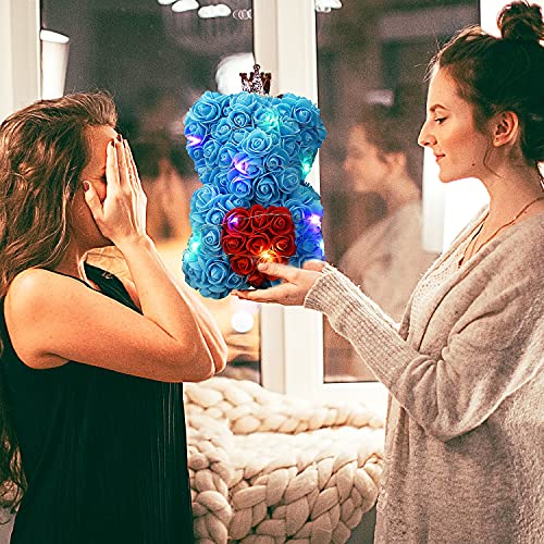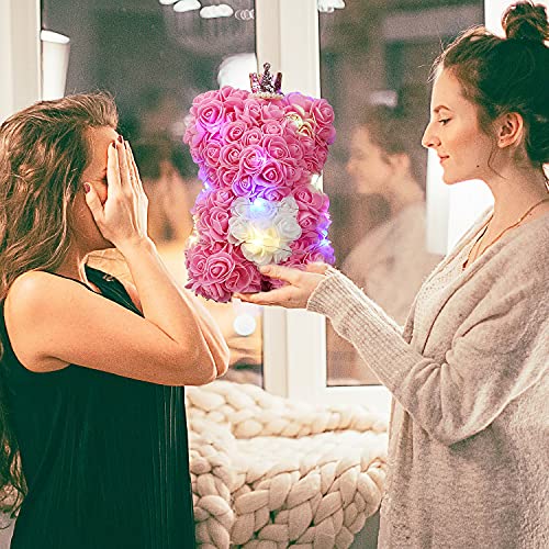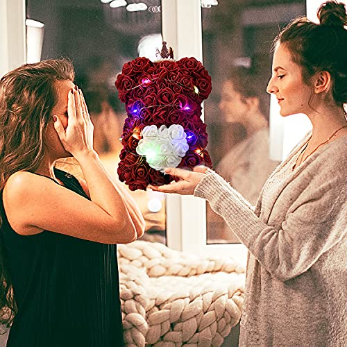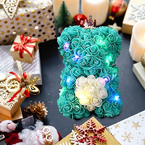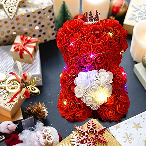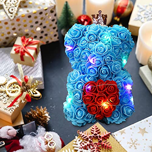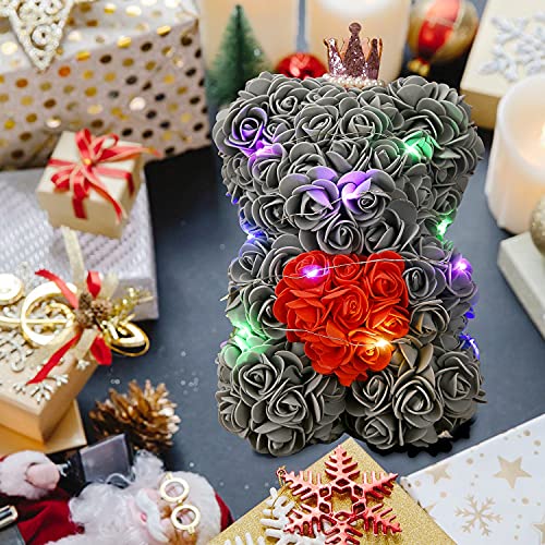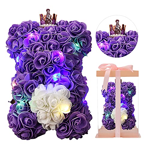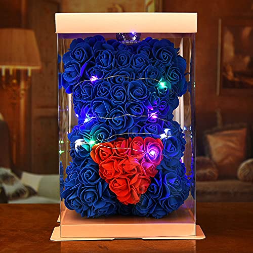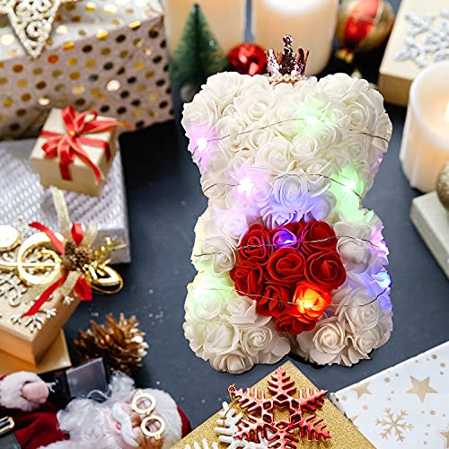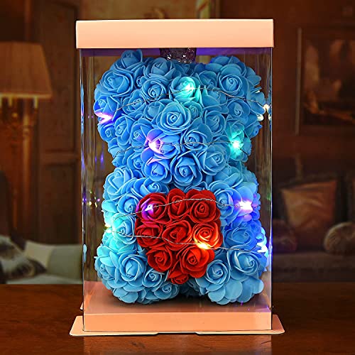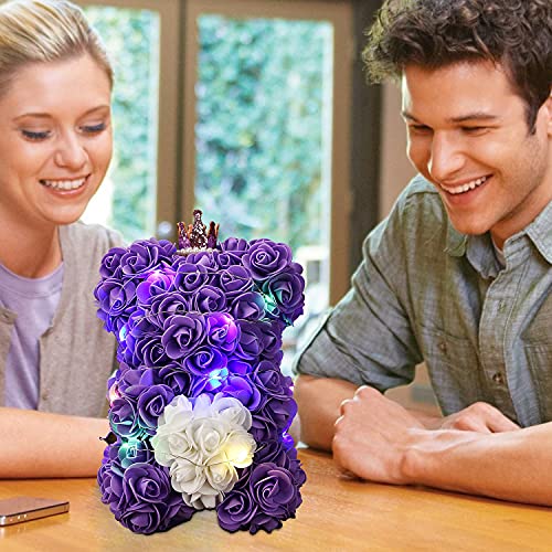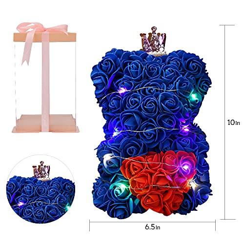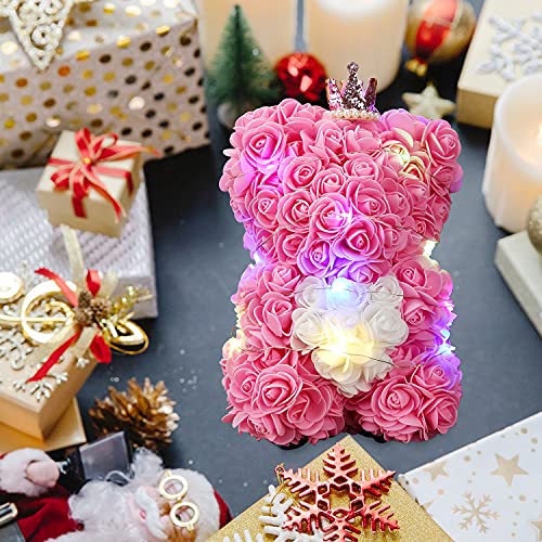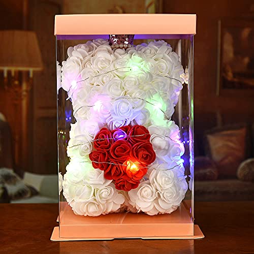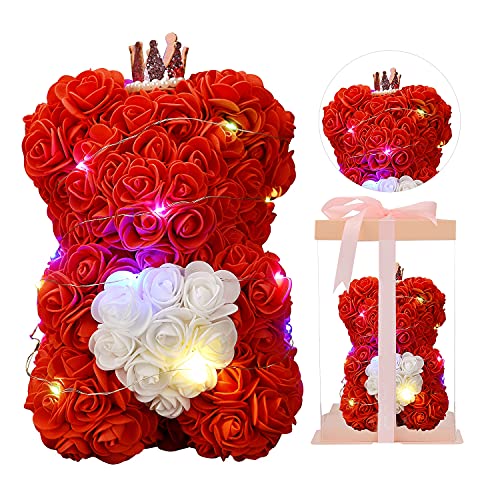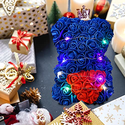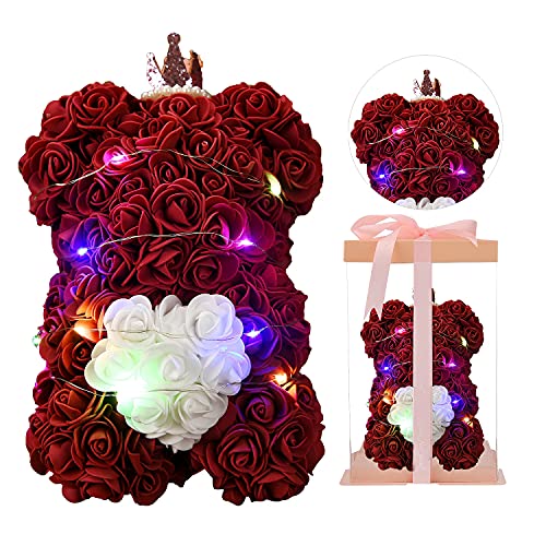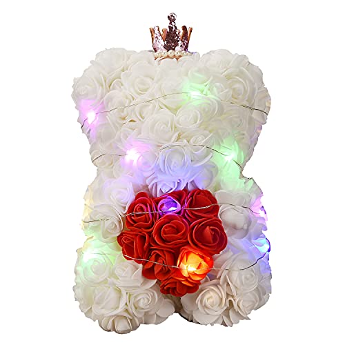 - Rose Teddy Bear-Lightweight and long-lasting perfect charm, suitable for any family and holiday gifts. Over 250+ Flowers on Every Rose Bear, About 25.4 cm (10 inch)Tall. Including a transparent gift box (the thin protective film on the surface can be torn off)-Give away LED light