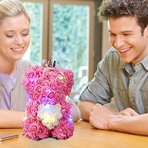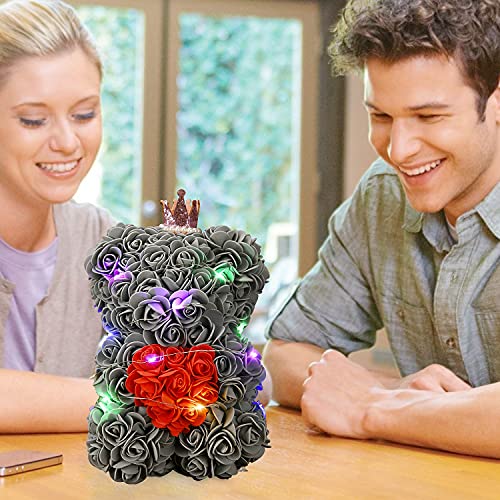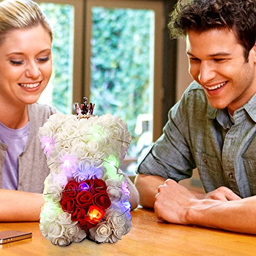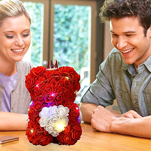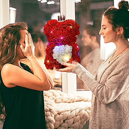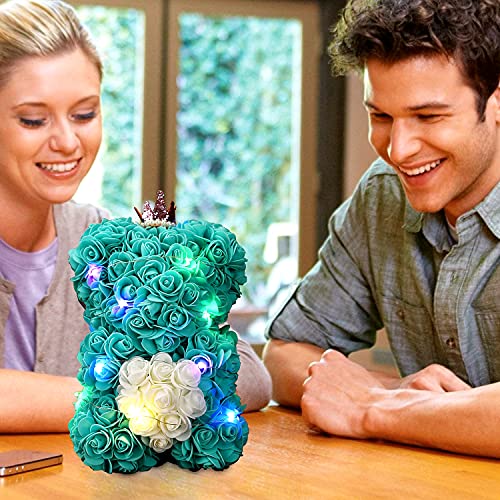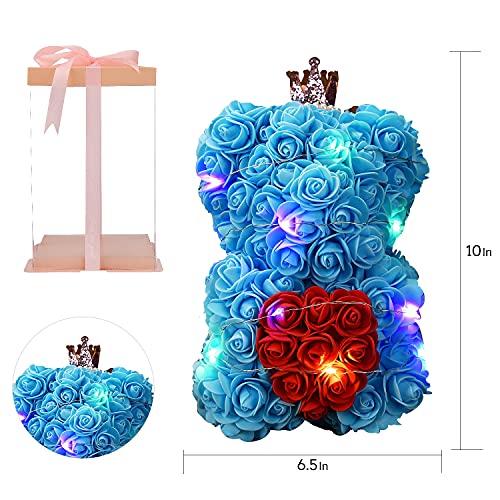 - 10 inch Artificial Rose Teddy Bear With LED Light is perfect for Valentine's Day, Mother's Day, Wedding, Anniversary and Christmas gifts.