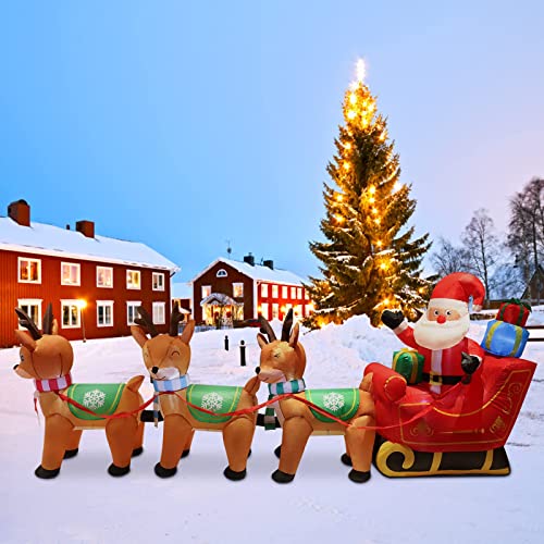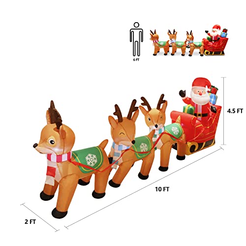 - Perfect Design for Christmas Yard Decoration: Christmas is come. Do you want to add some fun to your yard? This 10ft Christmas inflatable Santa reindeer is the best choice. An adorable, kid friendly style. The perfect size enough to stand indoors or use outdoors!