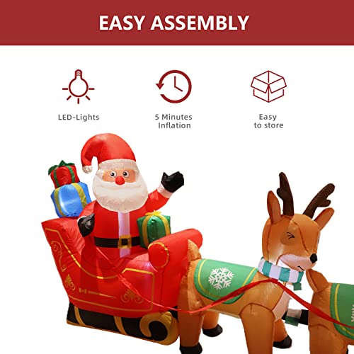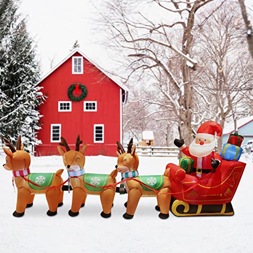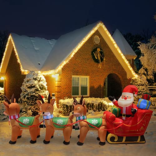 - Inflatable Christmas Santa Reindeer with LED Lights: Super bright white led lights built inside the blow up Christmas decorations, light up in the evening to attract neighbors and guests. Perfectly appeal to younger kids.