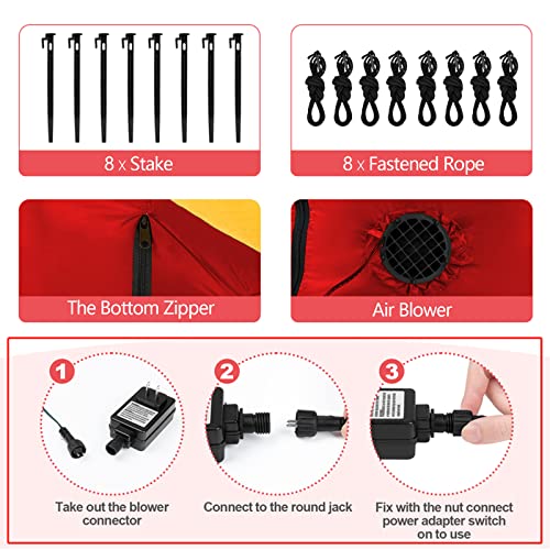 - More Stable for Outdoor Use: Thickened waterproof polyester fabric. Soft, light and firm, wear-resistant. Built-in fixed sandbag, 8 tethers and 8 stakes are included to secure to the ground. No need to worry that this Christmas yard inflatable will fly away with the wind.