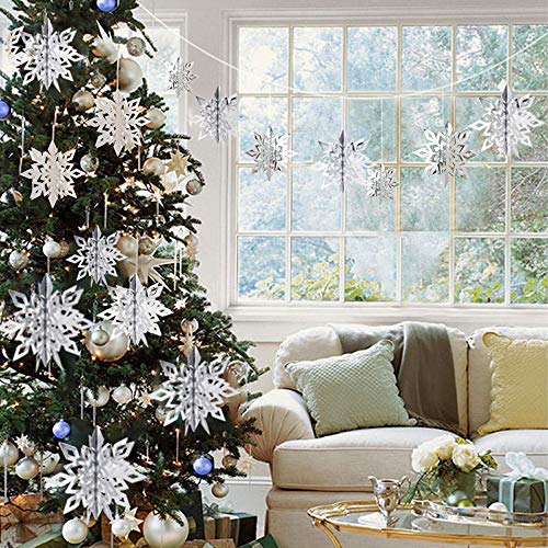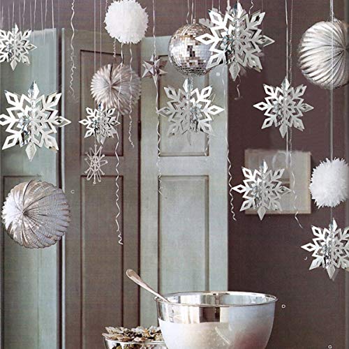 - ❄️Premium Material: The silver glittery snowflake made by high-grade pearl paper, waterproof,very hard and uneasy to crease. Each strand is packaged separately and come assembled. Just put them up as you go, don't unwrap it in a rush to avoid tangle