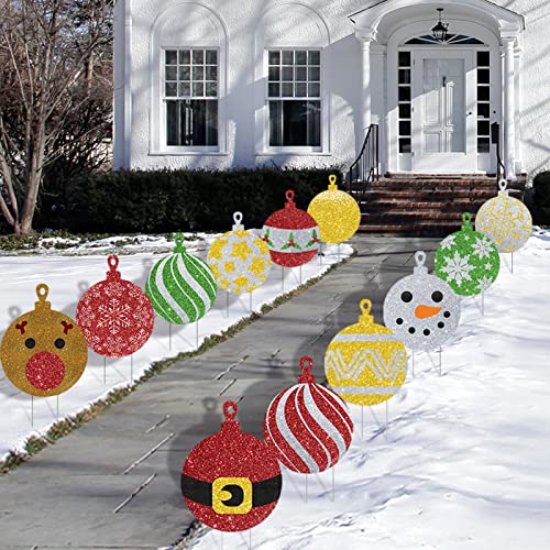 - Detailed dimension: each Xmas balls yard sign measures about 11.8 x 9 inches, and the stake is approx. 11 inches in length, you can easily install them together to embellish your lawn, yard, Christmas tree and home