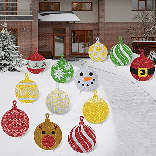 12 Pieces Christmas Balls Yard Sign Lawn Decorations
