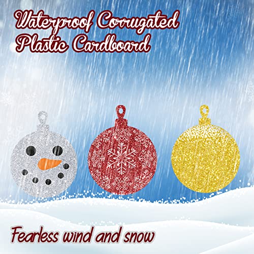 - Firm structure: these Christmas snowflake balls signs are made of quality corrugated cardboard, featuring with firm construction and good waterproof capability, the corrugated surface is printed with classic and glitter patterns, presenting a 3-dimensional effect, they can be applied for a long time even being displayed in yard or other outdoor places; Stakes are made of plastic, reliable and not easy to break
