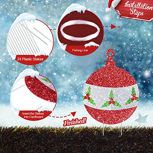 - Adequate contents: you will get 12 pieces Christmas balls yard signs in 12 different styles, as well as 24 pieces plastic stakes and 1 roll of fish wire in this package, rich styles and enough quantity to support your Christmas decorative needs and the demands of sharing with families