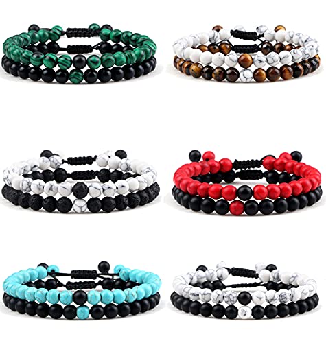 - Affordable Distance Bracelets Set: Create the Distance Bracelet for allowing those lovers or friends apart to feel connected.There are 12pcs distance bracelets in a pack, including tiger eye stone bracelet and black matte agate stone bracelet, lava rock stone bracelets and howlite bracelet.malachite stone bracelet and so on,Variety of choice to be your favorite, worth to buy.