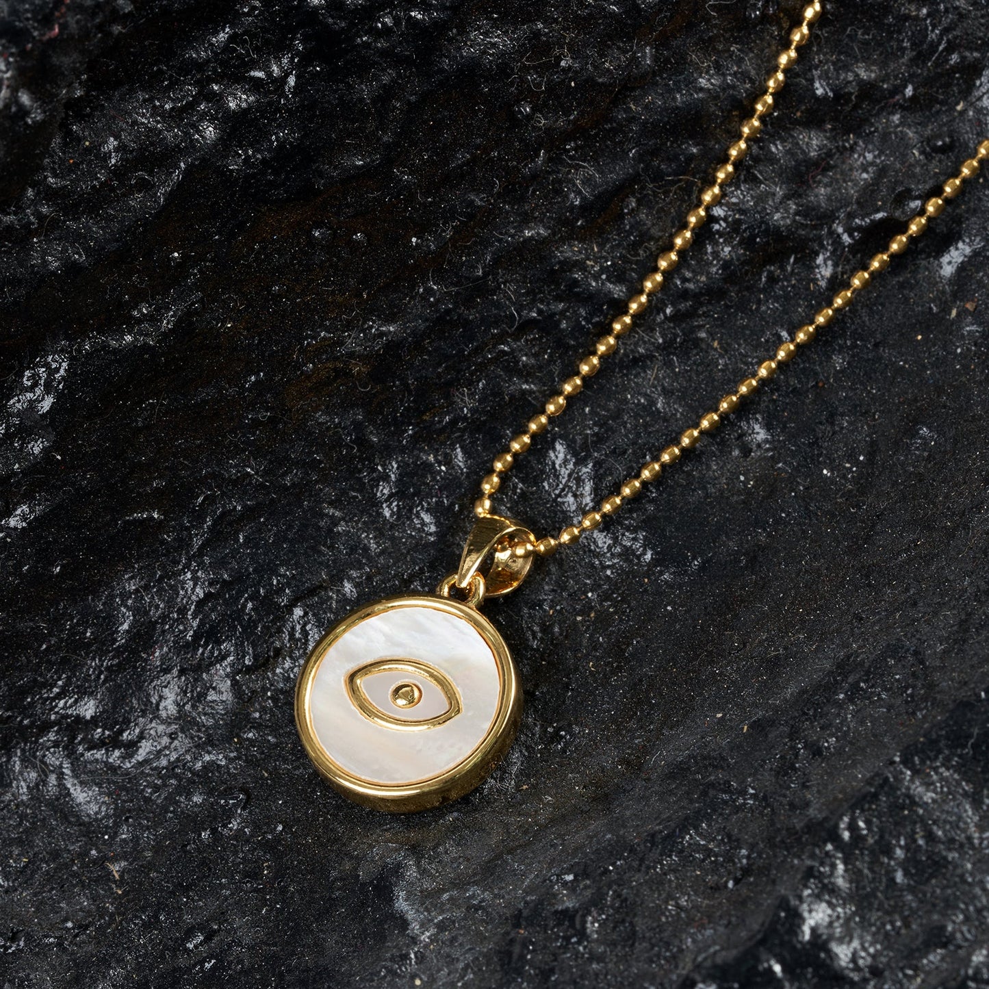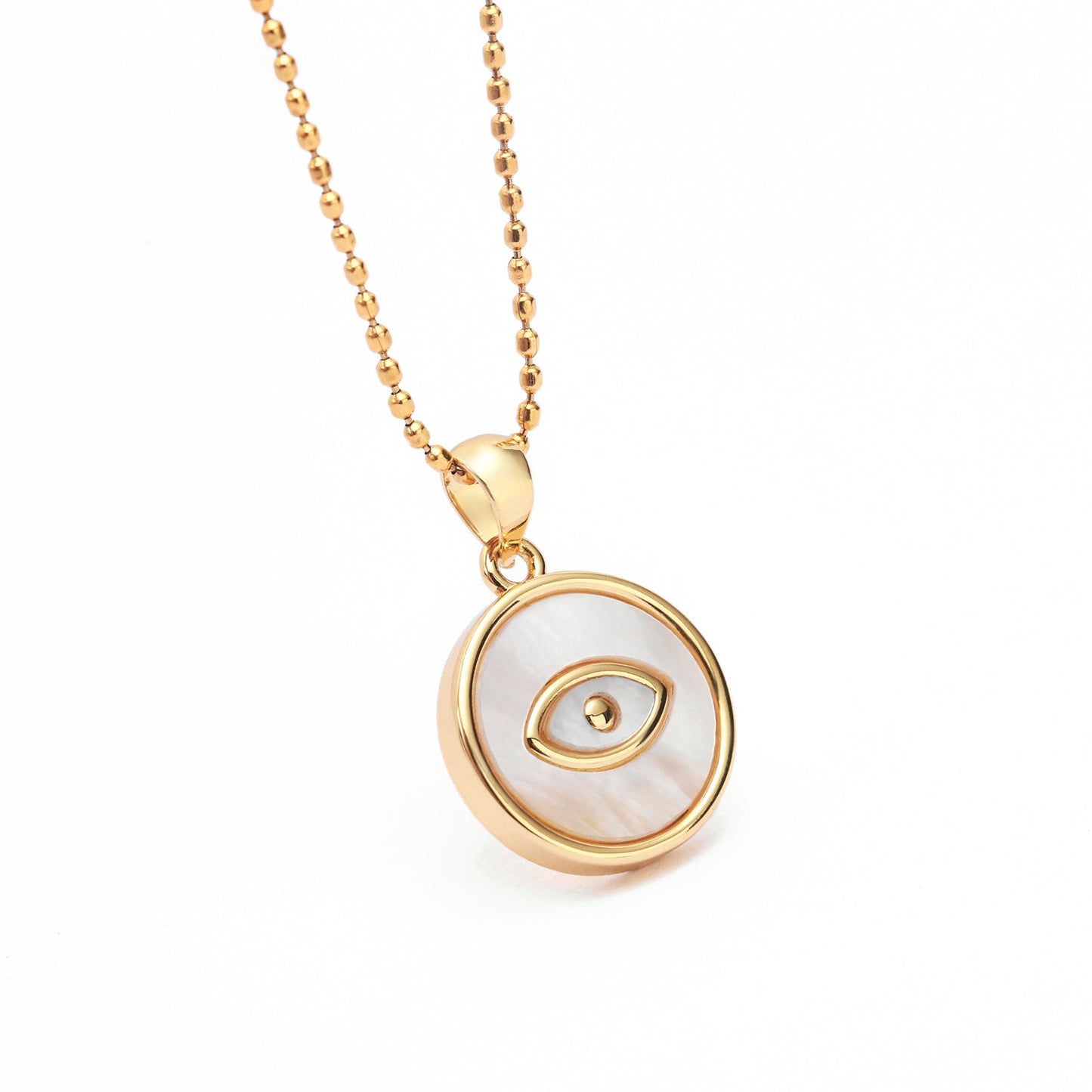 This stylish and elegant natural mother-of-pearl evil eye pendant necklace is a great gift for a loved one, perfect for everyday wear. Different light sources present different glosses. We strive to deliver the highest levels of quality, craftsmanship and timeless designs that can be shown off from the office to the red carpet. Send it to your loved one! Main features: *- 14K gold plated *- 0.47''(12mm) natural mother-of-pearl *- Pendant size: 0.59" (15mm) *- Chain length: 16"+2" *- Weight: 3.7g±0.5g Gifts for Her: The mother-of-pearl evil eye pendant necklace come with an elegant gift box. No wrapping is needed. This evil eye pendant could be a great personalized Mother's Day Gifts, Valentine's Day Gifts, Anniversary's Day Gifts, Christmas Gifts, Wedding Gifts, Last Minute Gifts, Engagement Gifts, Girlfriend Gift for your mother, wife, pamper girlsfriend, daughter, female friends to express your love. Precaution: *- This natural properties and composition of mined gemstones define the unique beauty of each piece. Each one is unique. Some products will have cracks, cracks are naturally formed and not damaged. *- Due to the unique nature of the natural molding of the product, the colors and shapes are random. We hope you like it. *- At the end of the day, take your jewelry off and put it in your gift box. *- Don't wear it while bathing, swimming or sleeping. *- Avoid direct contact with perfumes, body washes, lotions and excessive sweating. *- Don't expose to the sun or avoid high temperature. *- Store your jewelry separately to prevent bumping into each other and causing tiny scratches.