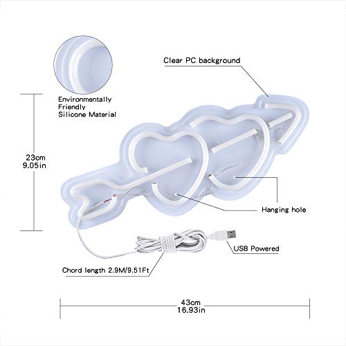 15.9' Neon Heart Light Sign, Wall Decoration Powered by USB