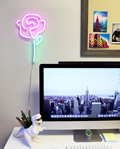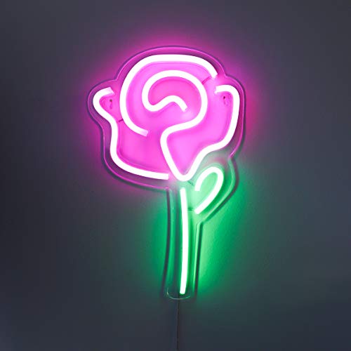 - DESIGN: This pink rose LED sign is 3D art that brightens and transforms the space around it. Use it to enliven a living room, retro fit a kitchen, or make a stylish bar or iconic game room. Great to add personality to bedroom, home office, bathroom, window, desk, & balcony. Create a fun and lively ambiance to a small apartment or any room, wall, or shelf by using this bold sign that POPS. The cute & modern design is also an alternative solution for your children's bedroom that they will love