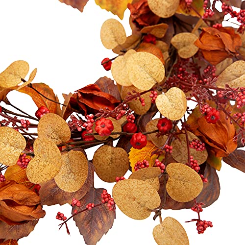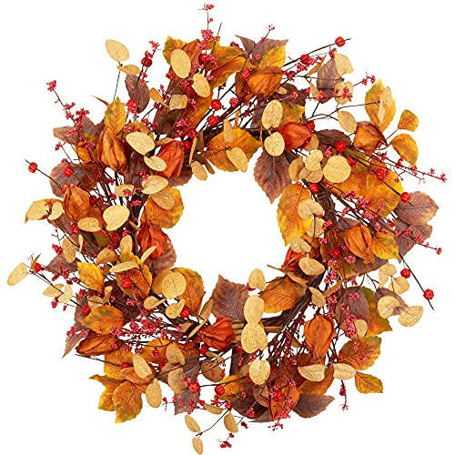 - 🍂Durable Material --The wreath is embellished with fall leaves,golden berries and tiny berries, which is suitable for autumn.