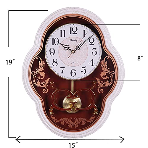 19 inch Vintage/Retro Wall Clock,w/ Pendulum,Silent Grandfather-Battery Operated