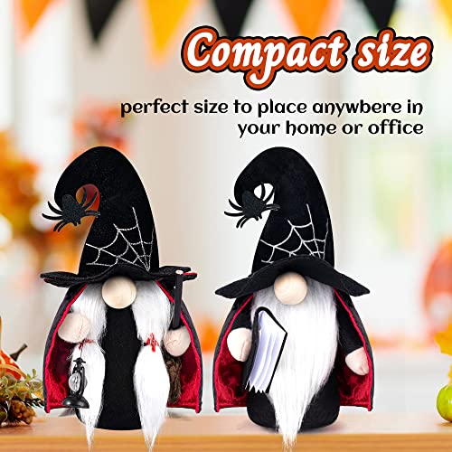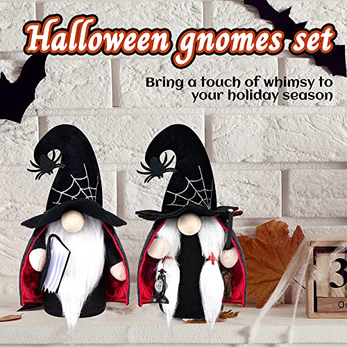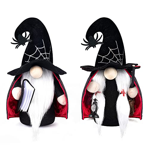 - Halloween Gnomes Plush - These Halloween gnomes are all ready for Halloween, wearing a witches hat adorned with a spider and shining cloak, magic book & broom in hand, so unique and different! Each Gnome plush is absolutely charming, and will bring a smile and win over any Gnome lover’s heart! The package contains pair of gnomes plush.