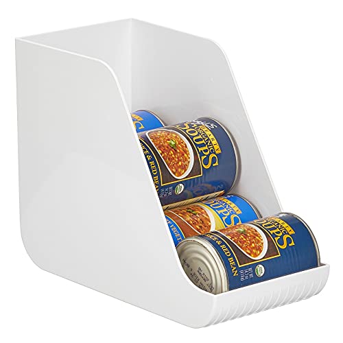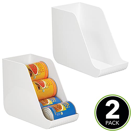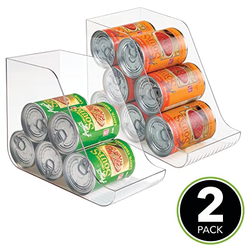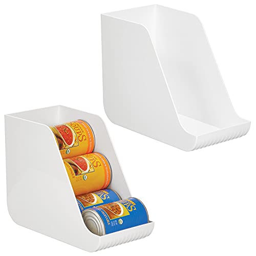 - STORES AND DISPENSES: These bins are designed to sit upright to help you take advantage of vertical space and make the most of tight spaces in your fridge, pantry, cabinet, on a shelf, and even on the kitchen countertop; Ideal for soda, canned fruits, vegetables, soup, broth, pet food and more; Keep your refrigerator neat and organized; Set of 2