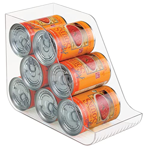 - GENEROUSLY SIZED: This storage organizer holds 7 standard sized soda, pop, or beer cans in a compact, space-saving design; Also holds canned goods of any sort - soup, vegetable, broth, tomato sauce, and pet food cans; Use in the refrigerator to keep beverages cold; Great in the freezer for storing and organizing frozen juices