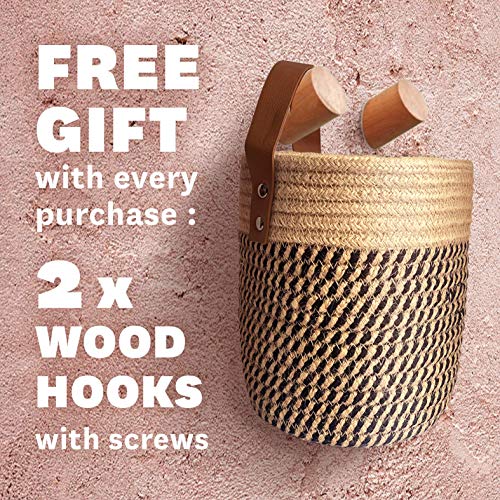 - 🍃FREE WOOD HOOKS: All of our wall organizer basket sets come with 2 FREE modern wall hooks.