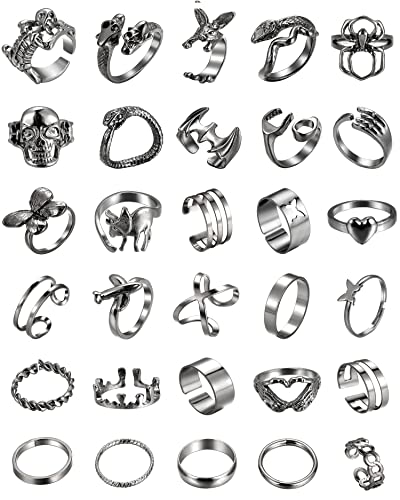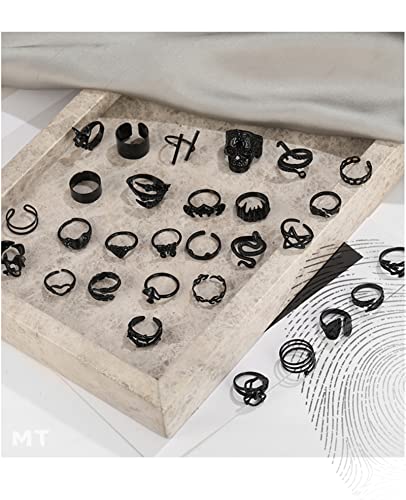 - 🛍️BLACK PUNK RINGS - 20 pcs pack of punk black rings for women,in one pack, you’ll get snake ring,claw ring,butterfly ring,heart ring,spider ring,leaf ring,star ring ,chunky ring etc, much wider variety caters for different outfits and occasions, be unique every day