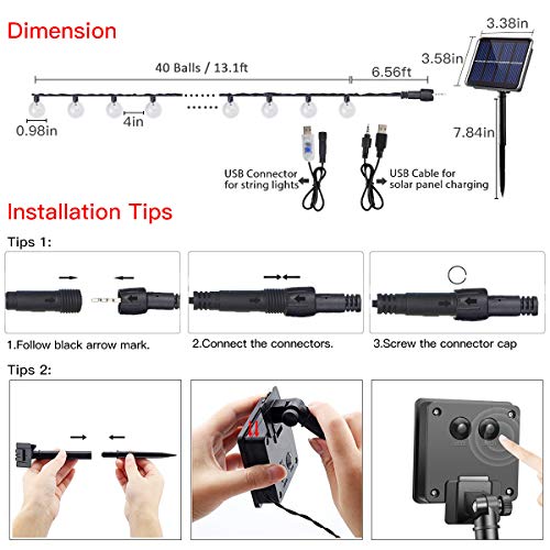 - 【Widely Used】LED string lights and solar panel both are Waterproof, ensure the outdoor string lights may withstand rain and damp climates. Perfect for outdoor decor, such as patio wedding,party,backyard decorations,etc.