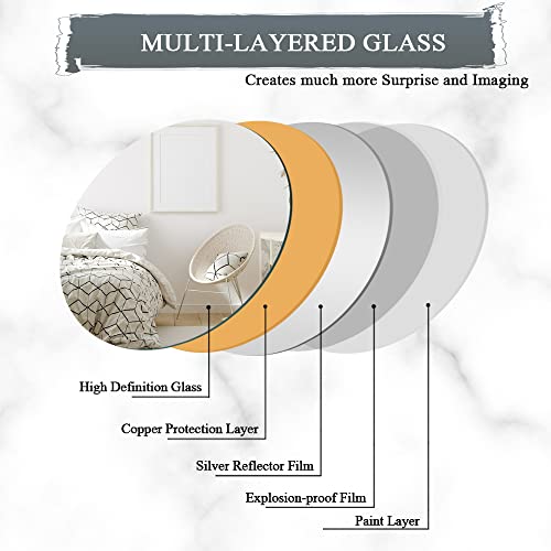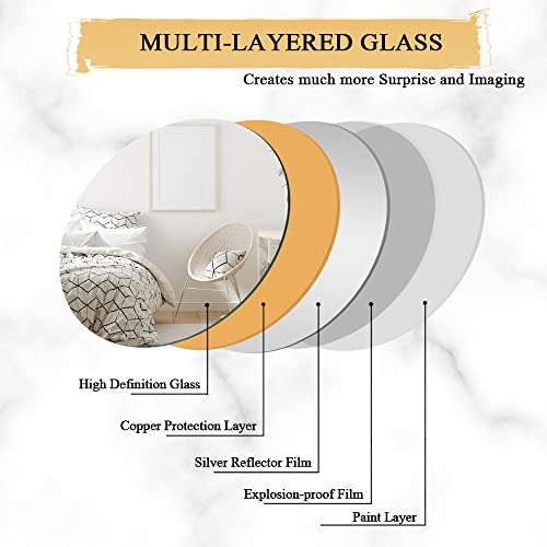 - 【SHATTER-RESISTANT PACKAGING】The round wall mirror comes with a customized packaging, which can be protected from damage during transportation. It has passed all tests including dropping, impact, heavy pressure etc. Moreover, we provide full refund or free replacement for mirror(s) damaged on uncontrollable arrival.