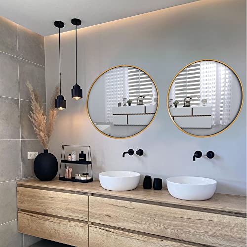 - 【GOOD CHOICE FOR BATHROOM】This round bathroom mirror is manufactured using enviromentally friendly, copper free backing paint which prevents edge corrosion that happens overtime with standard mirrors. Aluminum alloy frame means that you can use these in all wet areas without the worry of rust or swelling in wooden frames.