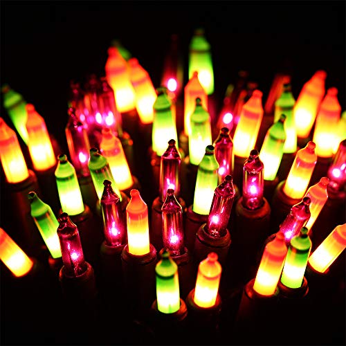 - ● 100 Incandescent bulbs(Non-LED) per string, 2.5V per bulb, 0.42W per bulb, incandescent orange&purple&green mini bulbs.