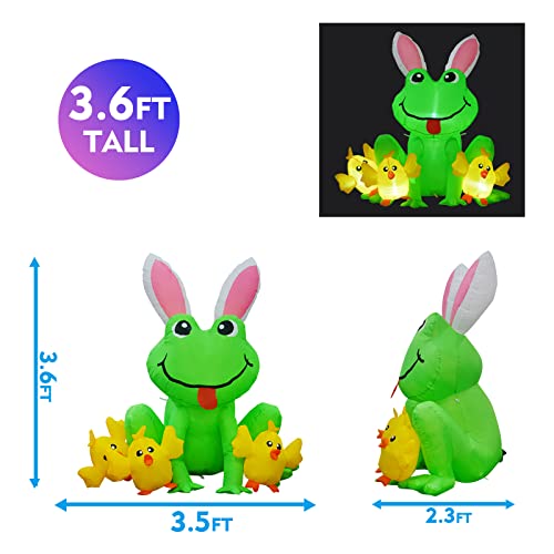 3.6 FT Easter Inflatables Frog & Chicks w/ LED Lights
