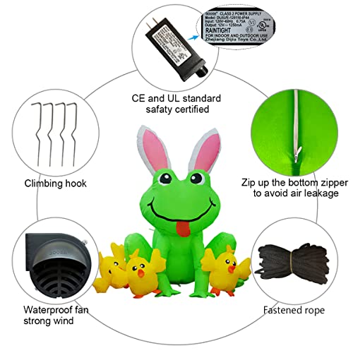 - [Cute Appearance Design] Easter inflatable frog come with LED lights built inside. Inflatable Frog made children’s love at first sight. Beside Cinco De Mayo, it can be used as any other holiday decoration. Installed in the courtyard to enjoy Holiday with your family and spreading a happiness atmosphere to your neighborhoods.