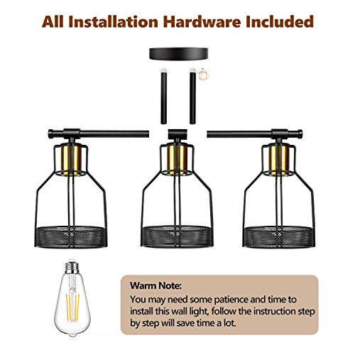 - 🖤Vintage Rustic&Industrial Style- Farmhouse bathroom light fixture is farmhouse-inspired designed to add you home classic country touch, with metal opened cage, they maximizes its light with 360° cozy and comfortable decorative glow, excellent for coastal, craftsman, farmhouse, rustic, urban industrial, and vintage electric style.