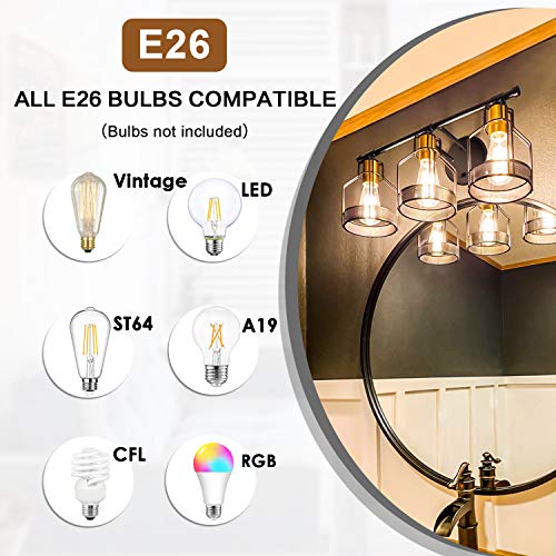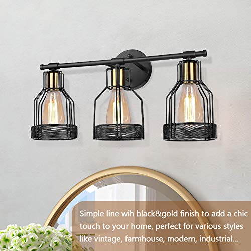 3-Light Farmhouse Bathroom Vanity Light Fixtures, Industrial Black & Gold E26 Socket