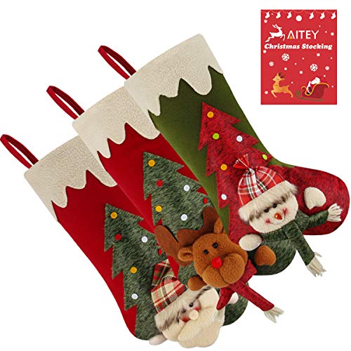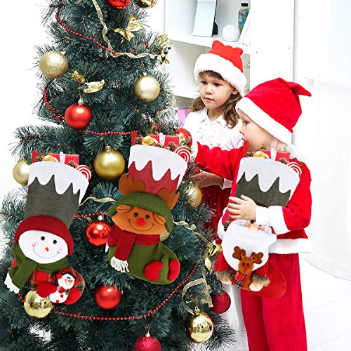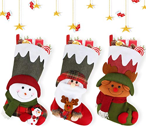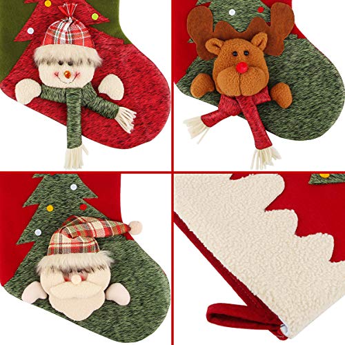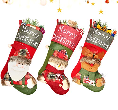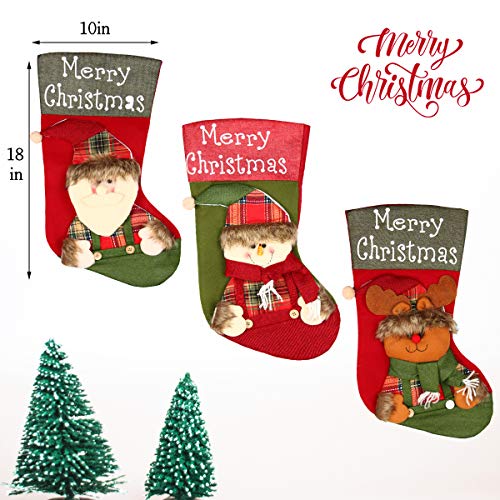 3 Pcs 18" Christmas Big Stockings Santa Snowman Reindeer Character 3D Plush Faux Fur