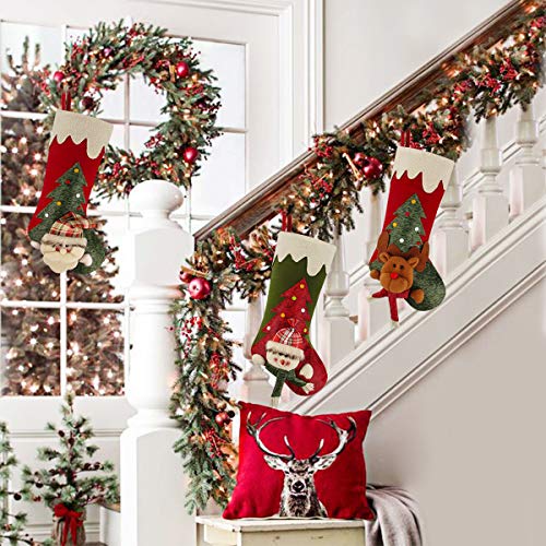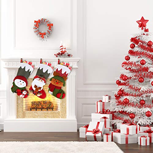 - 3 Kinds Christmas Character - This value package comes with 3 big Christmas stockings, Santa, Snowman and Reindeer stocking would enhance festive atmosphere. That would be a wonderful decoration for Christmas, New Year at home, shipping mall, hotel.