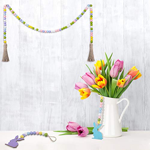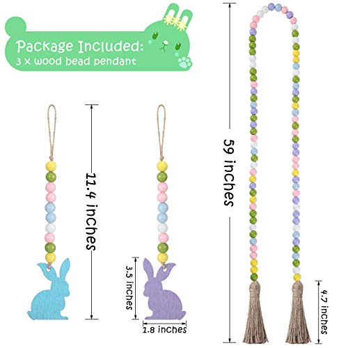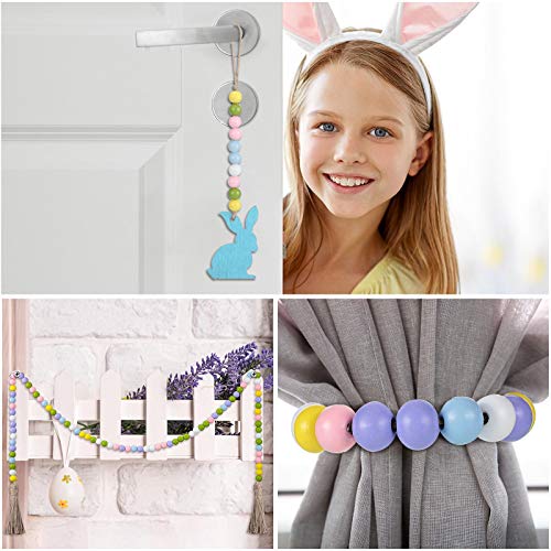 - 2 Chic styles: the package contains 3 pieces Easter wood bead garlands in 2 different styles, including 1 piece of long bead garland measuring approx. 59 inch/ 150 cm and 2 short bead garlands with rabbits of different colors, the diameter of each wooden bead is approx. 0.6 inch/ 16 mm; Sufficient quantity and chic styles to make your home more elegant