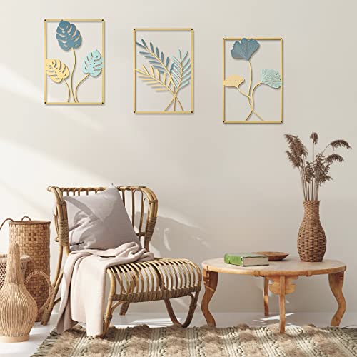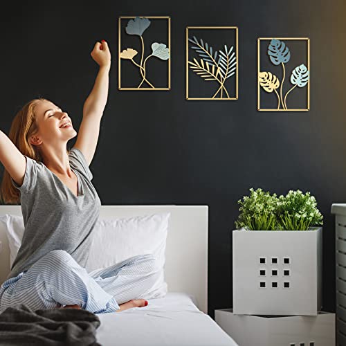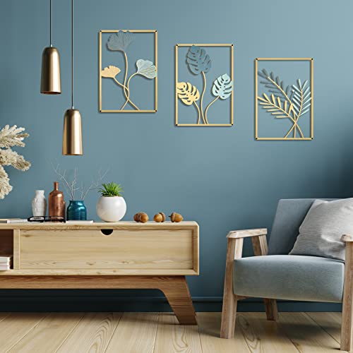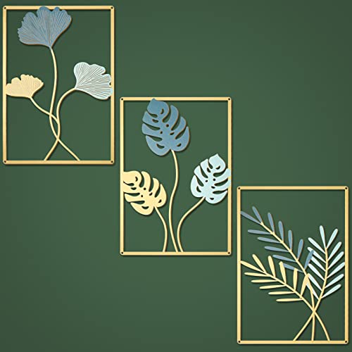 - Package contents: you will receive 3 pieces gold and dust blue plant leaf metal wall decorations, you can use the wall sign to decorate your house, room and office, or to share the decorations to your family members, neighbors or friends