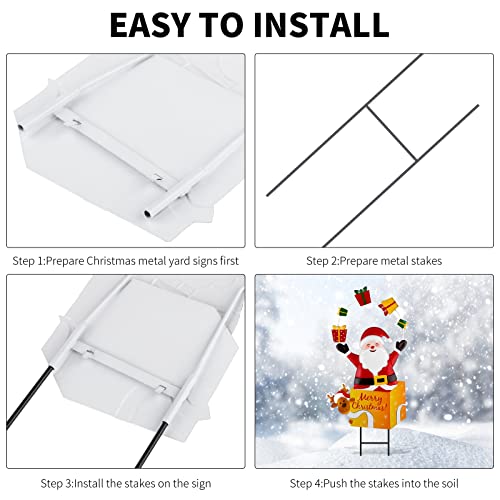 - Size: the size of the Christmas metal yard signs is about 16 x 12 inches / 40 x 30 cm, the size of the H-shaped stakes are 16 inches / 40 cm, and the height of the spliced yard signs is about 29.5 inches / 75 cm; the super large size yard signs make your courtyard more spectacular and eye-catching and ideally decorate your courtyard