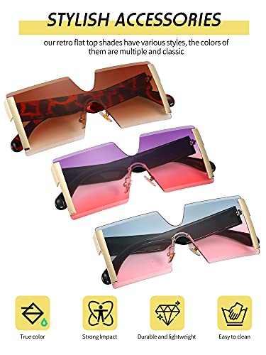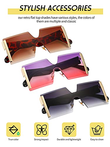 - 3 Pairs of vintage square frame sunglasses: package includes 3 pairs of rimless vintage sunglasses in 3 colors, suitable for women on the go, daily fashion statement, and for costume parties, light weight, simple and stylish, smooth line design, no frivolous and it's what we like