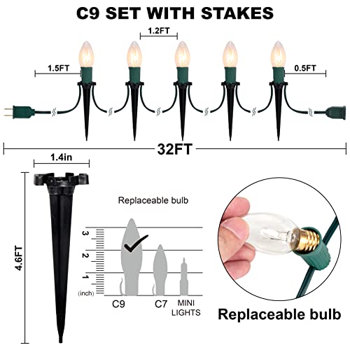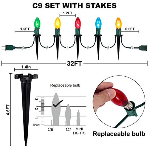 - SUPER VALUE PACK. Our Multicolored Christmas Pathway Light for Outdoor comes in 20 C9 White Multicolored Outdoor String Lights 30.75FT long.