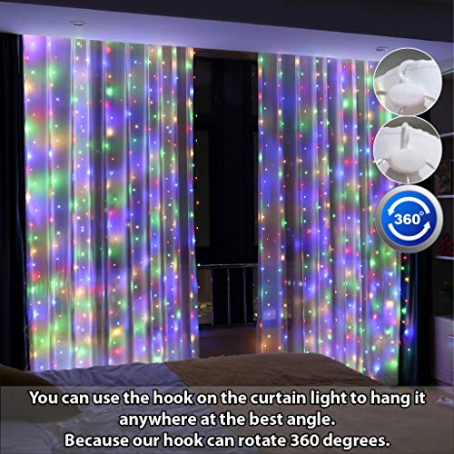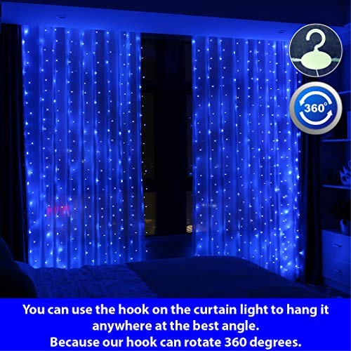 - · 【16.5ft Lead wire】: 300 individual LEDs, 9.8ft.x9.8ft curtains lights come with extra 16.5ft long power cord. 9.8ft main strand and 10 drop strings included hooks. Copper wire drop strings is tough & flexible, hanging & adjustable desired height naturally easily. No limits to your imagination, Do the shape you like. Enjoy a fairytale world ( Curtain is NOT included).