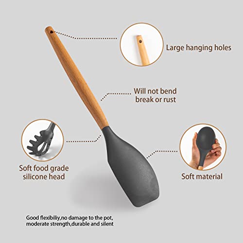 33 PCS Silicone Kitchen Cooking Utensils Set - Wooden Handles