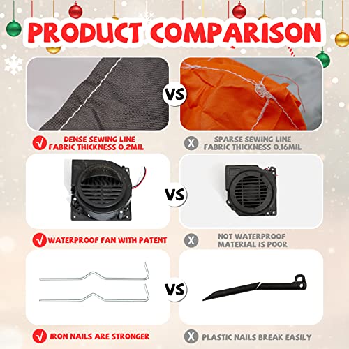 - šćStable and DurablećThe christmas blow up yard decorations easy to inflatećstand and deflate.Beside blower and storage bag, we providing ropes and iron nails to secure it on the ground. Note: zip up the bottom zipper to avoid air leakage, otherwise, open the zipper for fast deflate.