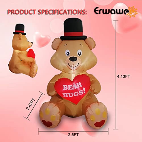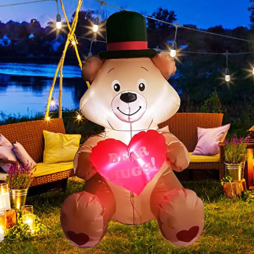 - 【Self Inflates Quickly】 With built-in a fan, Valentine's day inflatable cute bear with heart, it's can self inflates in moment once plug into a standard outlet and Inflated size is 4 foot tall.