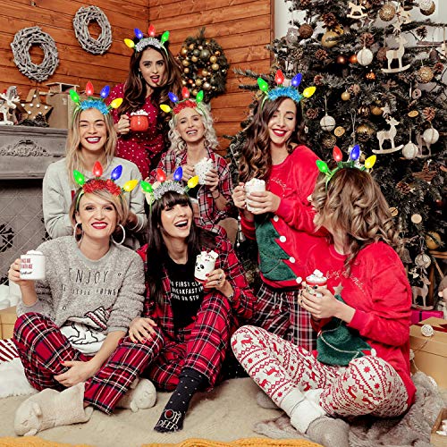 4 Pack Christmas LED Headbands with Colorful Light Up Bulbs 6 Flash Modes