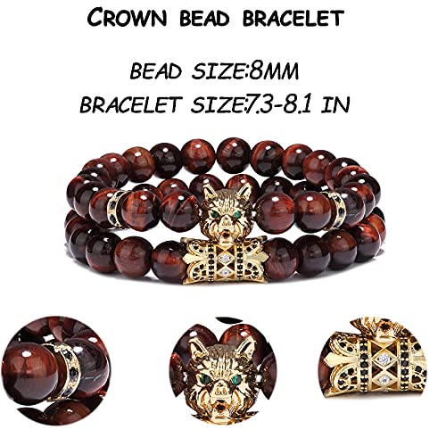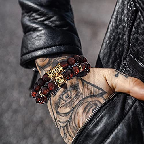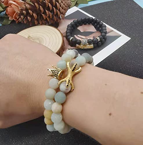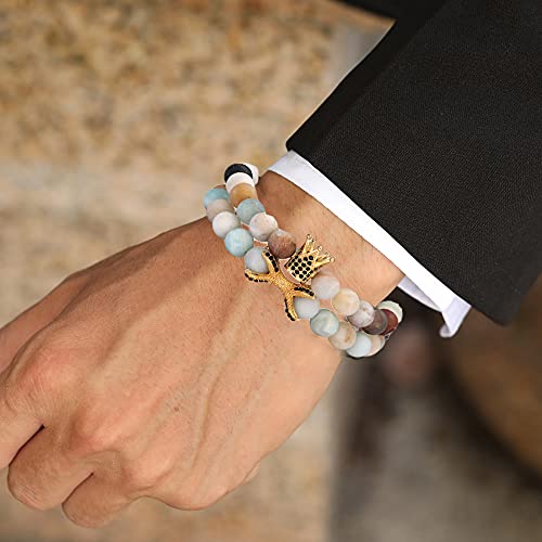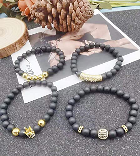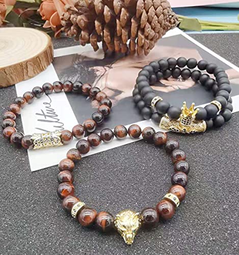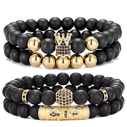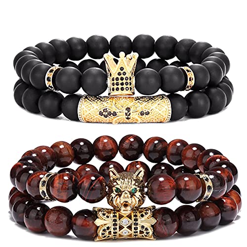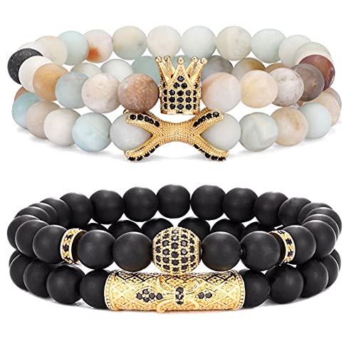 - ♕Unique Design♕-You will receive 4 pieces of natural bead bracelets in different styles in the package. These crown king charm beads bracelets will make you charmer, elegant and handsome .4 different color styles of fashion natural stone bracelets, different piece of choice for your everyday needs and different occasions. It is definitely an eye catching bracelet on your.