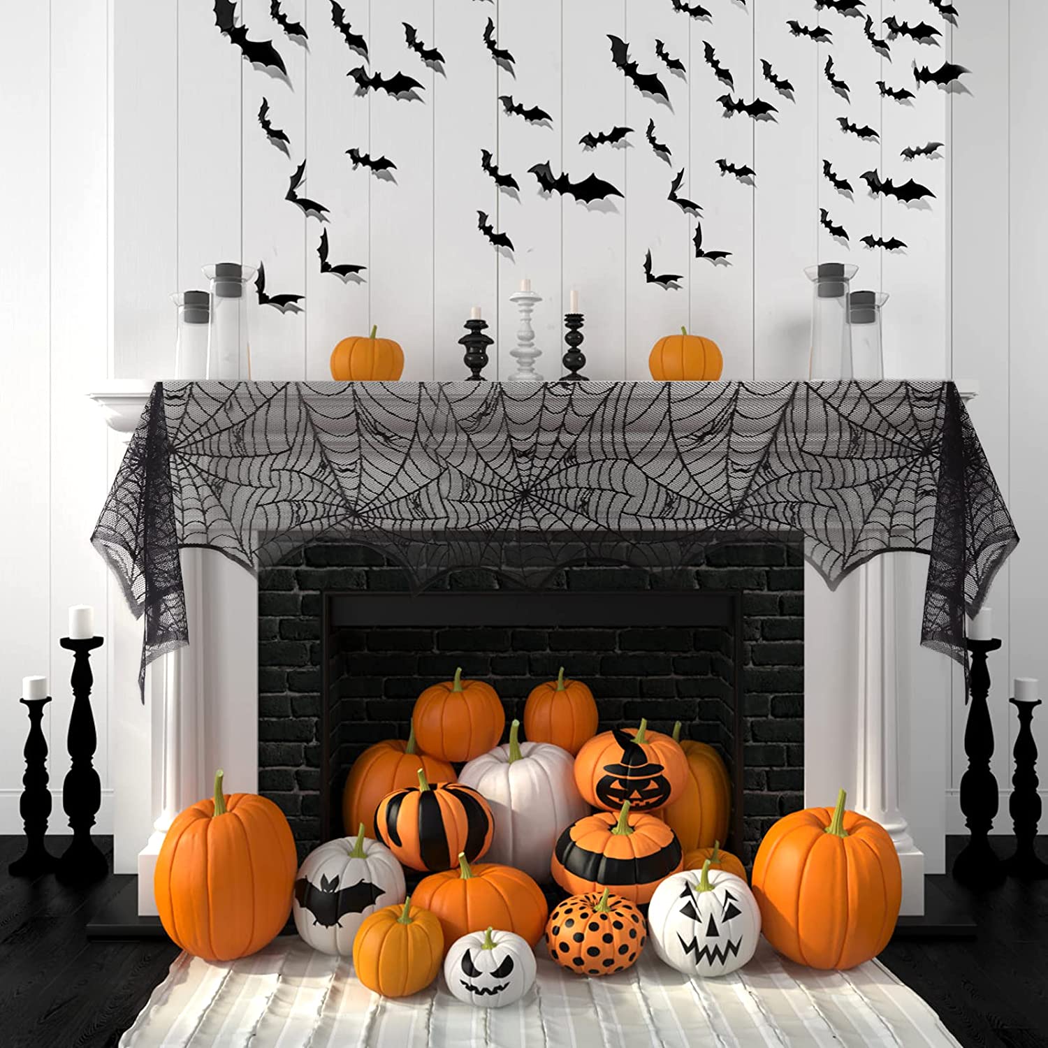 Happy Halloween! Are you looking for a Halloween set for the coming festival? Do you want to create a scary and unique atmosphere on Halloween? Come and choose our Halloween decoration set, you will get what you really want. š·Package contentsļ¼ 1 Pcs Halloween Fireplace Cloth (18*96in") 1 Pcs Halloween Tablecloth (72*18in") 1 Pcs Spider Web Lampshade (20*60in") 1 Pcs Lace Round Tablecloth (40in") 36 Pcs of 3D in 4 Sizes Bat Stickers (6pcs 6.3in"/6pcs 4.7in"/18pcs 3.5in"/6pcs 3.1") Material:Polyester ćHalloween Decoration Set for HomećClassic Spider pattern, Spider Web and black background, using them to add more atmosphere to your Halloween. ćComplete full Halloween decoration setćThis is a complete Halloween decor set that you can get everything you want in only one package. ćAdds a finishing touchćSet pumpkins atop our table runners to create spooky Halloween scenes with decorative spiders and creepy cobwebs in your haunted house! ćEnhance your homećCapture the spooky spirit of the holiday by leaving Halloween candy on our table runner to delight both grown ups and trick or treaters! *- š·ćPremium Materialć- Made of High Quality Soft Touch Lace, 100% Polyester, Lightweight and Wrinkle Resistant. Realistic Horror 3D Bat Wall Sticker is Super Durable Thick Pvc Paper *- š·ćHalloween Essentialsć-Halloween Interior Decoration Sets are Halloween Essentials That Can Be Used to Decorate Your Windows, Table, Fireplace, Kitchen, Yard, Mantle or any Other Place, You Can Also Use 3D Bats to Decorate Your Walls. All of These Halloween Party Decorating Supplies Will Help Create a Cool and Scary Holiday Vibe. You Can Also Use Them at Other Themed Parties *- š·ćWashable and ReusablećEasy to Care and Machine Wash. These Cloths are Eco-Friendly and Can Be Reused for Years to Come. If Desired, Lightly Iron From The Back