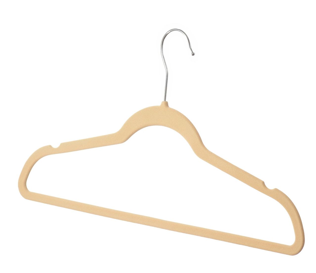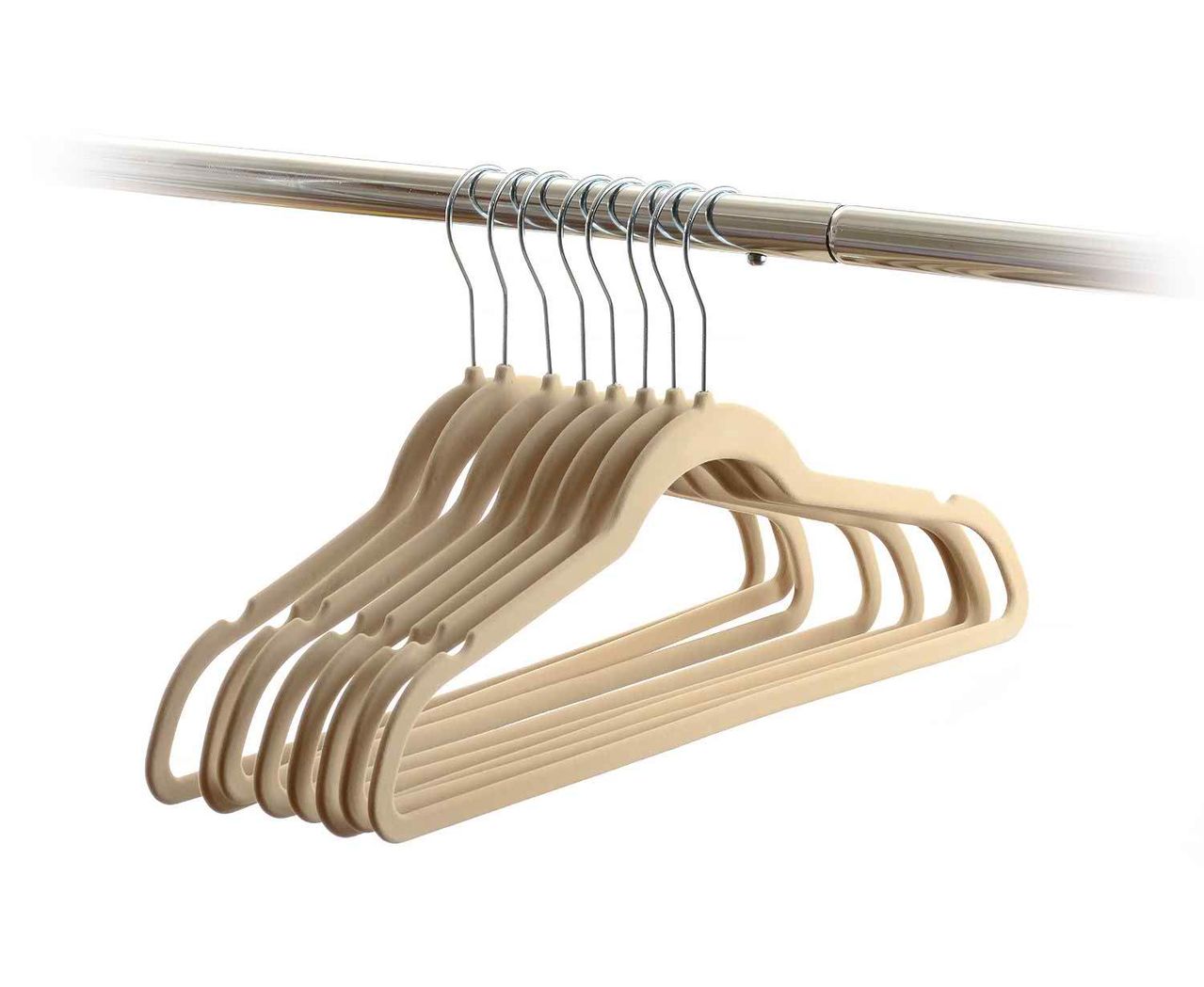 Combat closet clutter with these Hangers. Plastic and wire hangers can damage garments, causing indentations and inviting slippage. These ultra thin clothes hangers are designed to keep clothing secure without damaging delicate fabrics like silk, satin and chiffon. Their slim design creates up to 50 percent more space in closets than plastic or wooden hangers, with soft velvet exteriors that keep straps and necklines from slipping. The ivory velvet hangers have an open design for easy hanging, accommodating everything from dresses, tops and tunics to slacks, skirts and even scarves. Each set includes 50 hangers. 50-Pack Clothes Hangers Ivory Velvet Hangers Clothes Hanger Ultra Thin No Slip: *- Ultra thin clothes hangers are made from high quality materials *- Gives you up to 50% more space in your closet *- Ivory velvet hangers help to keep your closet organized *- Shape helps to prevent clothes from slipping *- Open design for hanging pants, skirts and scarves *- Ideal for jackets, blouses, dresses and more