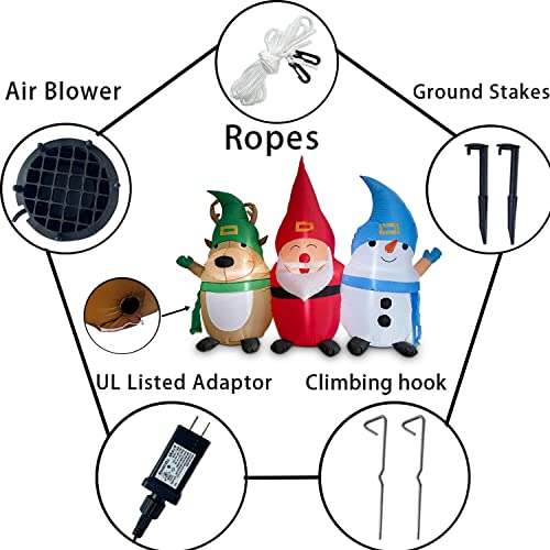 - đăAvailable Indoor or OutdoorďźCan also be used on windy daysďźăoutdoor christmas decorations yard includes 2 ground stakes, 2 fastened ropes with a 10 FT power cord means you can place it indoor outdoor, And remain stable in the wind,Donât worry about the santa claus decoration in the yard flying away.Donât worry if it rains or snows~