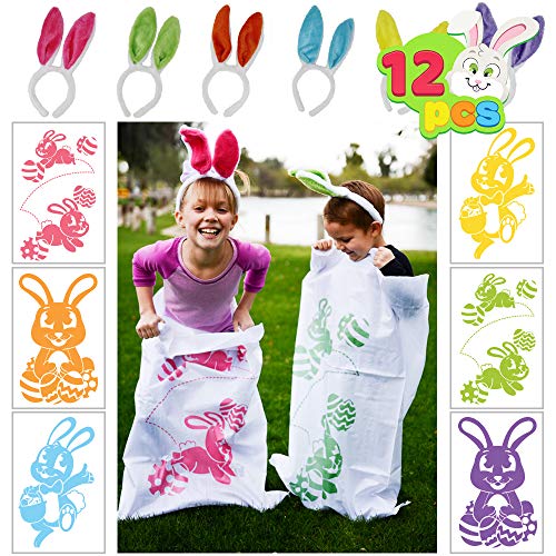 - Easter Game Play Set includes 6 Potato Sack Race Jumping Bags and 6 Bunny Ears Headbands.