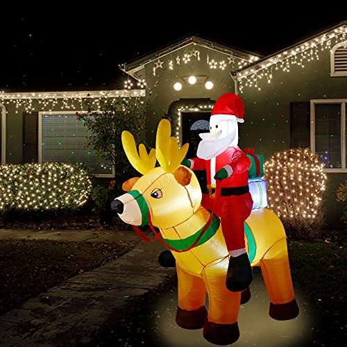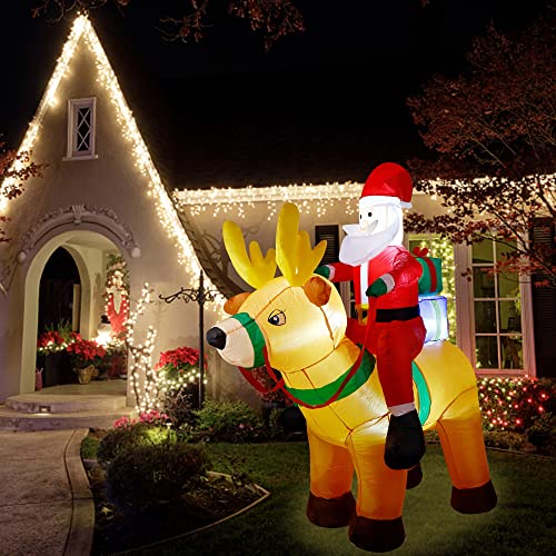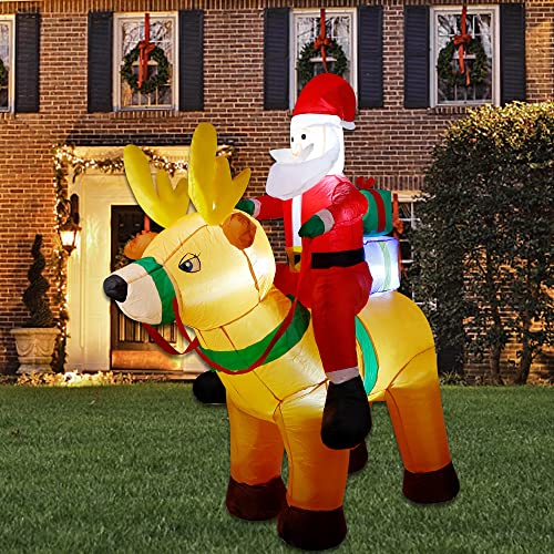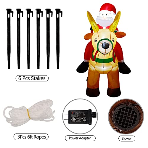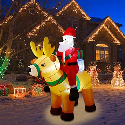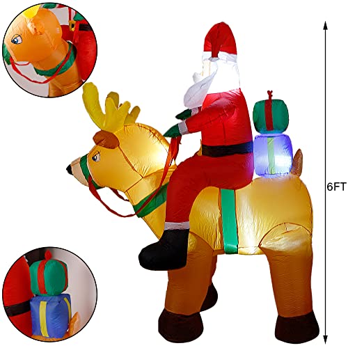 6 Ft Christmas Inflatable Santa Claus on Reindeer w/ Gift Box, LED Lights Christmas Blow up Decoration